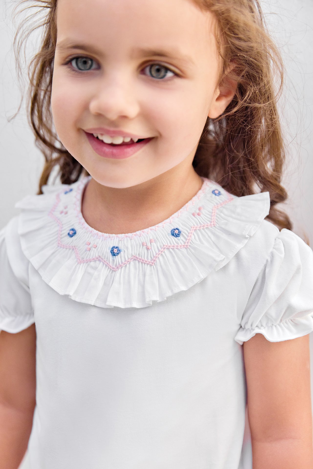 Body Weiss kragen floral gesmokt