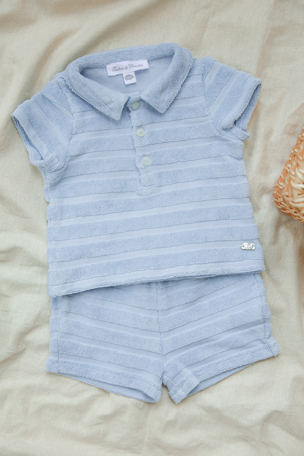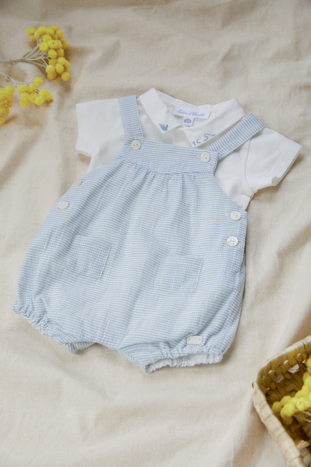 Find them News d 'Outfits, of Jumpsuits and Dungarees brand Tartine et Chocolat for them Babys boys. Discover the first Outfits of Baby, items in soft colors like the Blue, THE Grey, THE Beige or ecru and refined patterns such as Blue Garda. A selection of softness products thanks to materials such as organic cotton, Organic cotton, THE Cashmere, there Wool and the Velvet that the little ones will be able to wear every day. Depending on the season, the little boys will adopt Jumpsuits long sleeves or short sleeves or have a combinationShort. There Dungaree, essential to theDress of Baby will bring elegance and freshness to the look of your newborn baby. To associate with a pretty body, of the Accessories or Cardigans To complete your outfit. Also fall for Outfits T-shirt And Legging/Trousers or else body And Short, perfect to associate with a Cardigan. A doubt about a Size ? Our size guide is available in the product sheets of our models. Take advantage of free delivery from € 200 purchase and free return to mainland France. Our team is at your disposal via customer service.