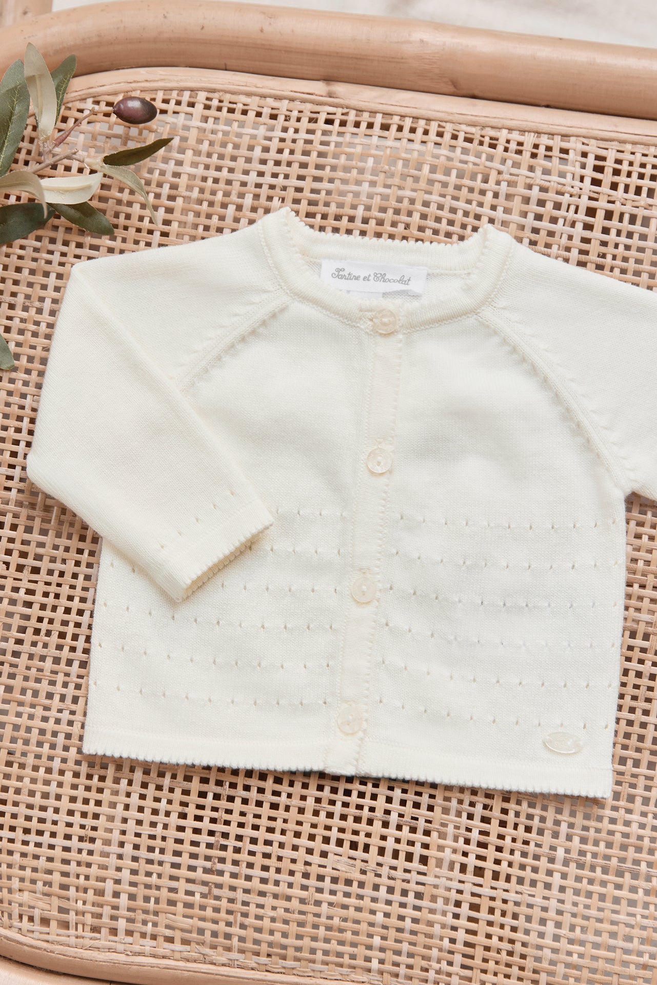 Cardigan Ecru cotton scalloped