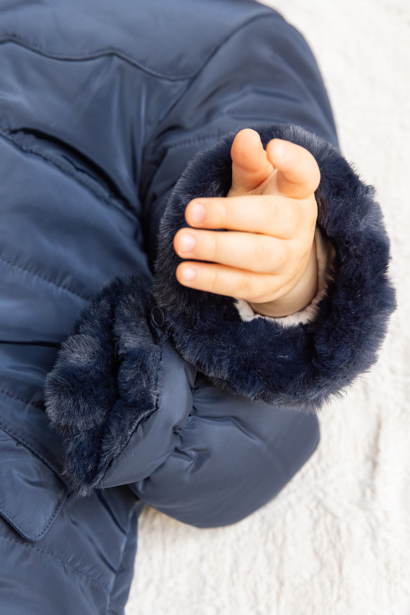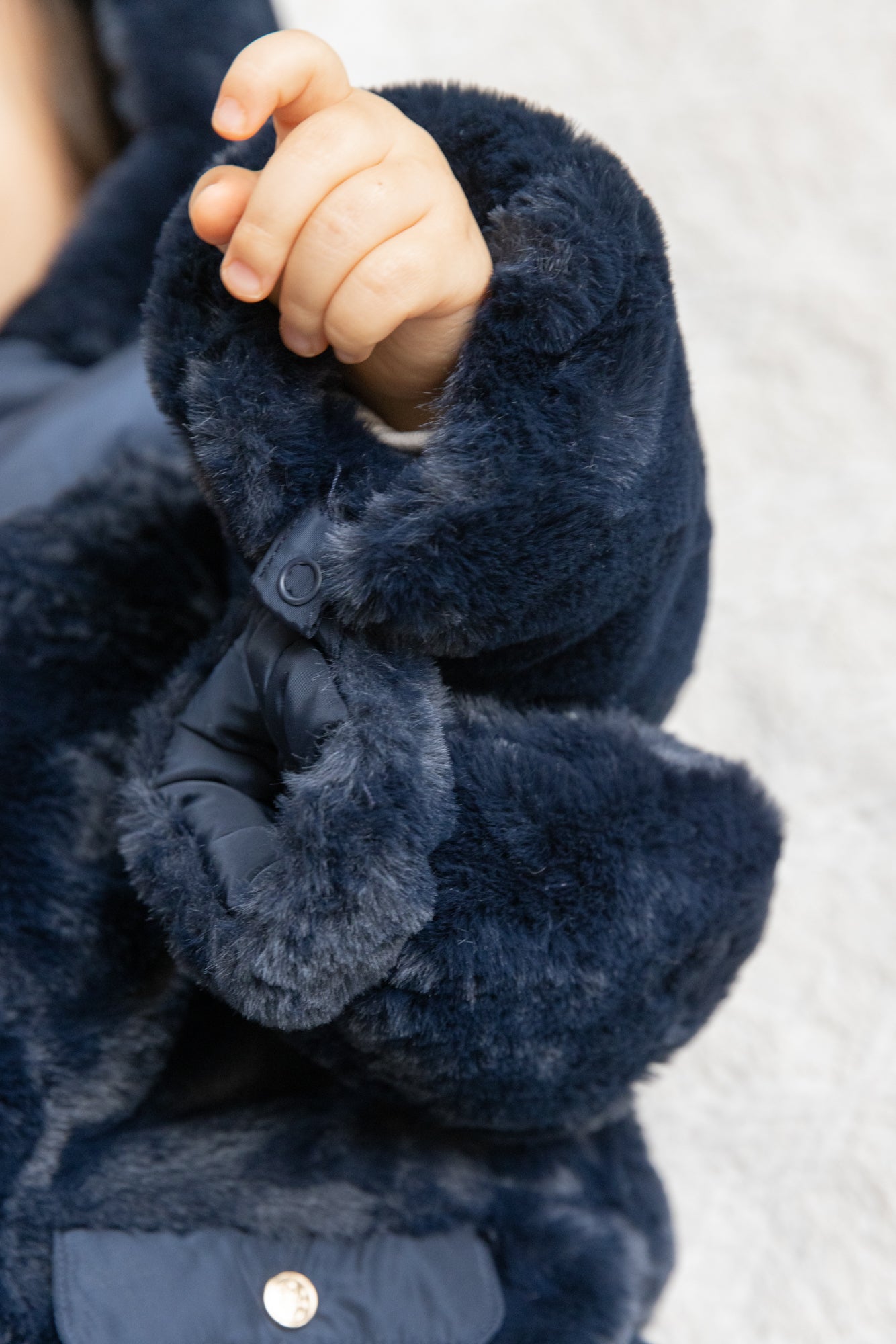Composition : Main fabric:100% polyester 1st wadding: 100% polyester Imitation fur:100% polyester