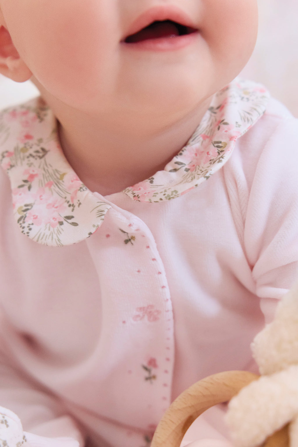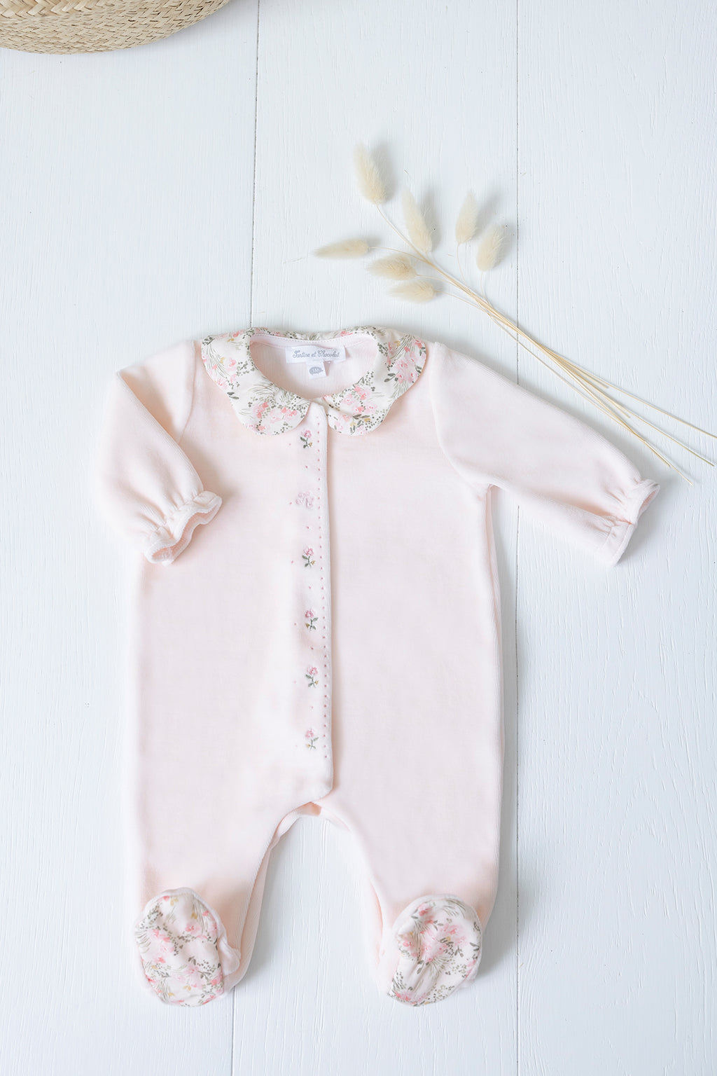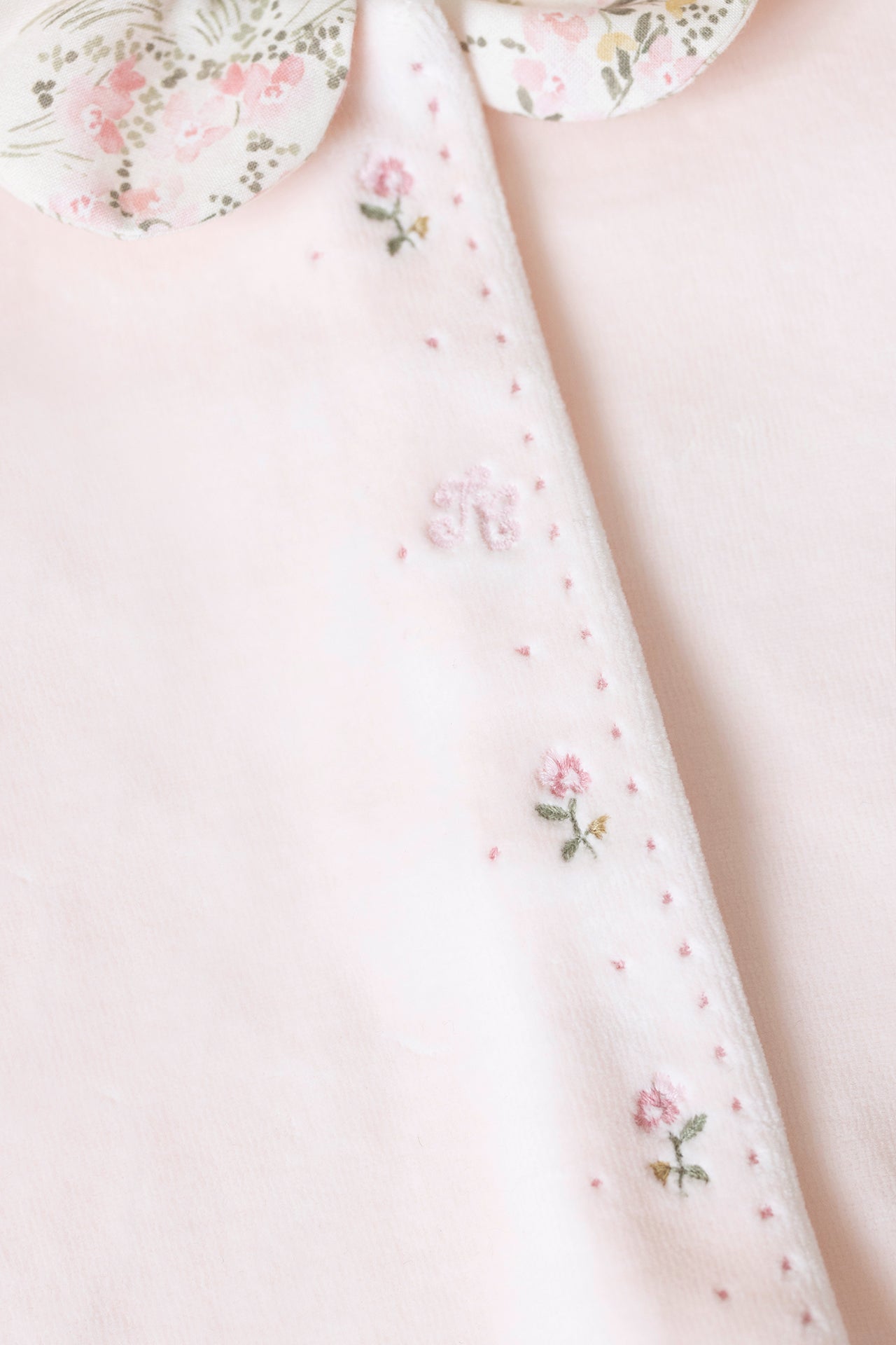 Pajamas Velvet pale pink print flowery jardin hivernal