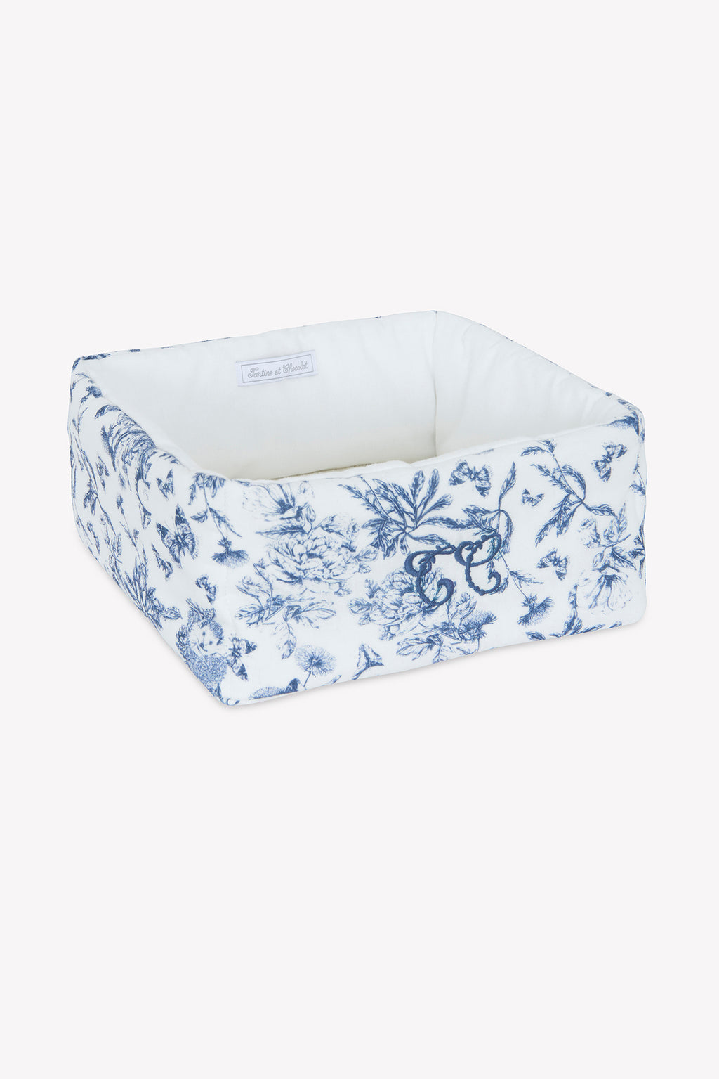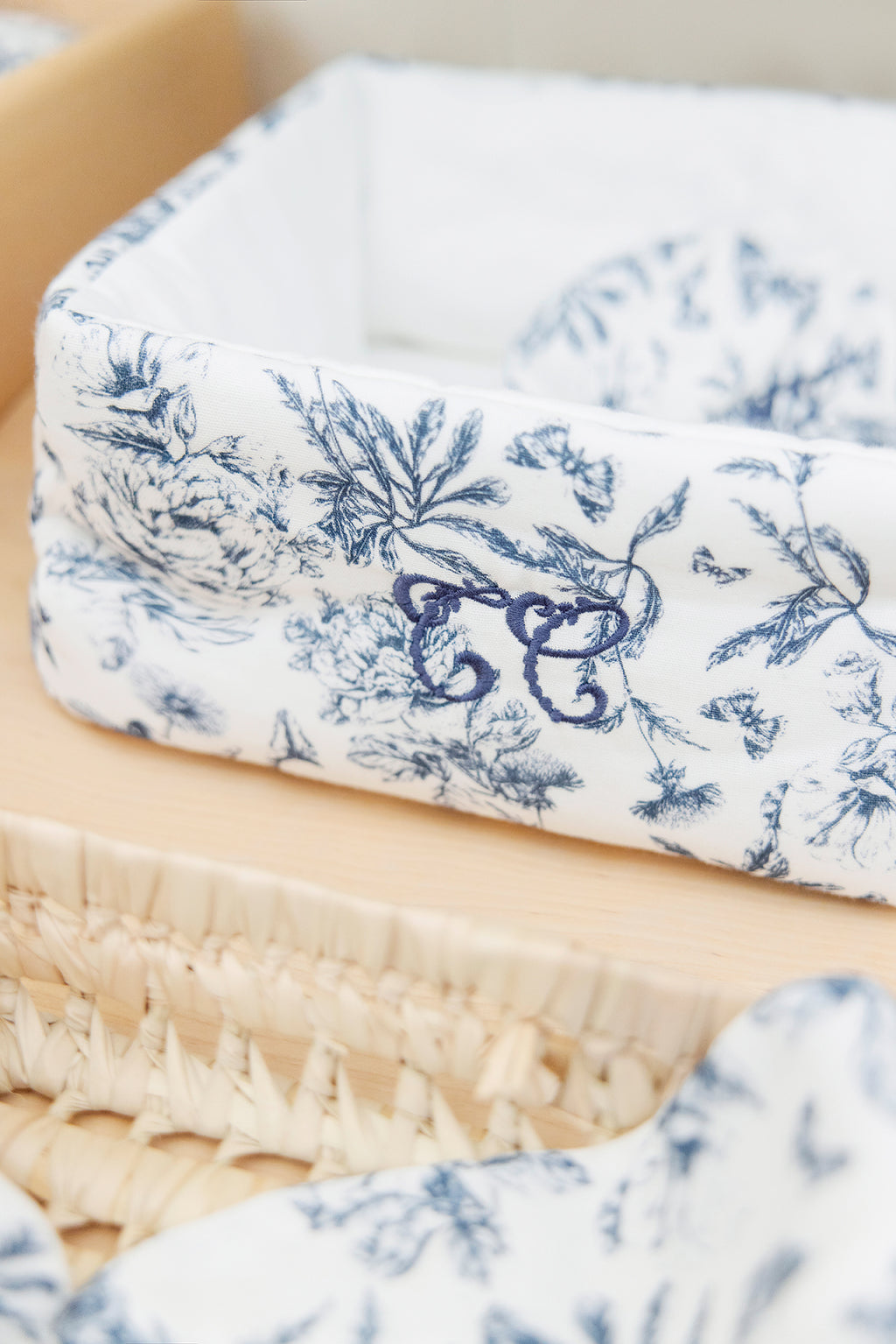 Canasta Estampado inspiración toile de jouy azul