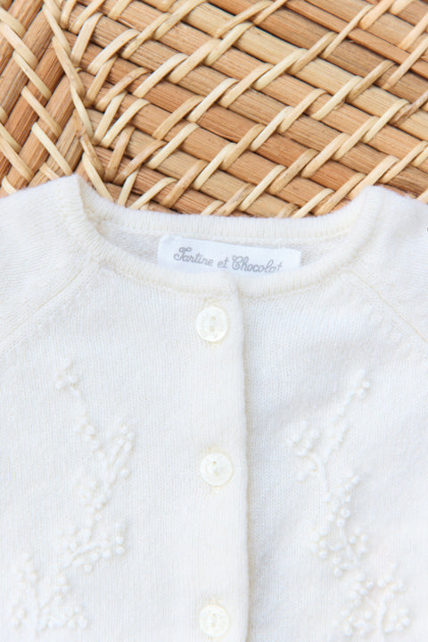 • Cardigan - Madreperla  Ricamo feuillage - Image principale