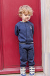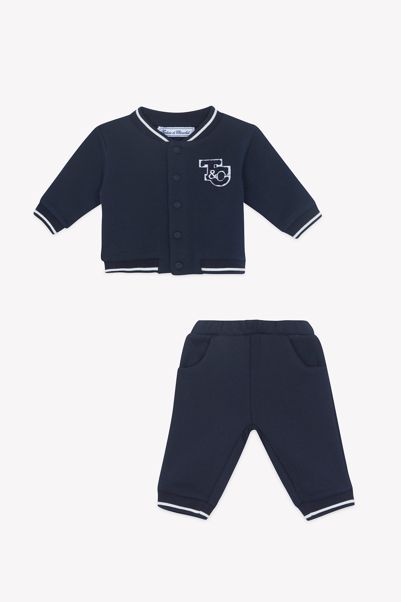 Cet ensemble jogging pour bébé garçon, en coloris marine, allie confort et style pour le quotidien. La veste est ornée d’un écusson TC et d’un hérisson, logo emblématique de Tartine et Chocolat. Un essentiel du dressing de votre bébé, pensé pour accompagner ses premières explorations avec douceur et liberté de mouvement.