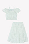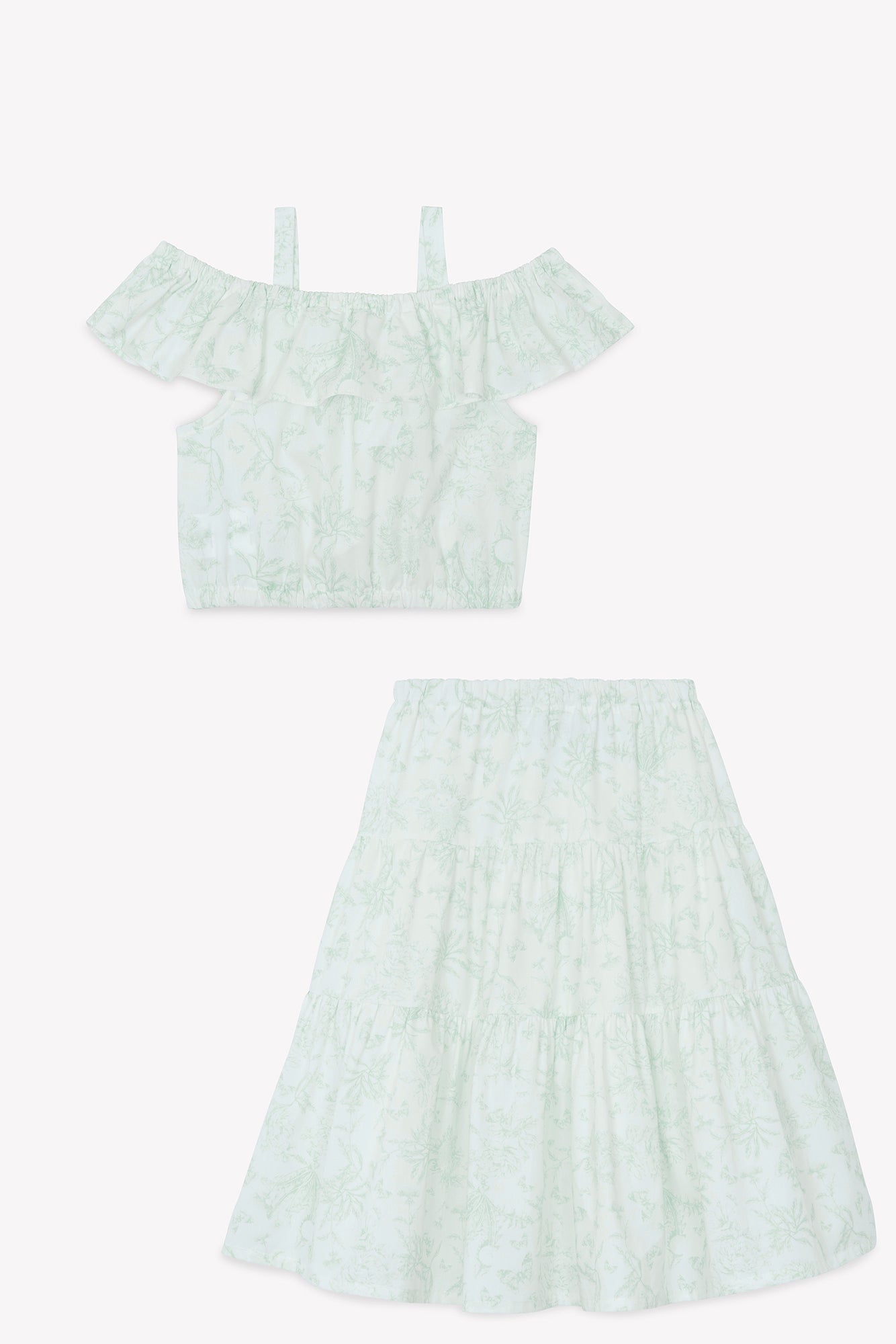 Ensemble long Vert d'eau inspiration toile de jouy